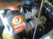 В ближайшие дни после покупки я оформил машину и полностью обслужил.Сразу заменил масло,залил такое как в реногор,Total 10w-50,воздушный фильтр и топливный,свечи с В/В проводами,тормозную жидкость Total Dot4,масло в КПП,так же Total 75w90,антифриз заменили аппаратом с промывкой.Залит был ещё Тосол,прогнали почти 90л чистой воды перед тем как залить антифриз,кстати тоже Total 😀